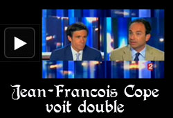 Illustration de ce doublon avec la présence de Jean-François Copé sur les deux chaînes. Nos confrères d'Arrêt sur Images ont fait un montage assez éloquent. A noter l'effort de sémantique du président de groupe pour ne pas lasser le téléspectateur : pour France 2, l'affaire est un "incident de parcours", pour France 3, "c'est les risques du métier".