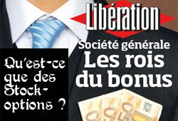 Par exemple, en 1999, le dirigeant d'Elf démissionne suite à la fusion entre Elf et TOTAL. Il part avec des indemnités et des stock-options estimées à plus de 200 millions d'euros. Plus récemment, en début de semaine, on a appris que la Société Générale allait distribuer près de 70 000 stock-options à son PDG alors que la banque a bénéficié de l'aide de l'Etat à hauteur de 1,7 milliard d'euros. Devant le tollé de cette annonce et suite à la pression de l'Elysée, la Société Générale a renoncé provisoirement à distribuer ces stock-options. Depuis, l'opposition réclame que le mode de rémunération des stock-options soit mieux encadré, notamment en interdisant leur distribution pour une entreprise qui licencie ou une entreprise qui reçoit une aide de l'Etat.