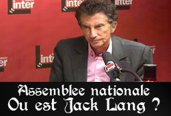 Le travail à l'Assemblée nationale se décompose en deux temps : le travail en séance plénière, dans l'hémicycle, et le travail en commission. Voilà pourquoi il est toujours facile de dénoncer l'absentéisme des députés à l'Assemblée nationale quand l'hémicycle est vide, puisqu'une grande partie du travail des députés se fait en commission. Invité de France Inter jeudi 17 septembre 2009, Jack Lang a demandé à ses amis socialistes de se remettre au travail, d'être plus combattifs sur certains sujets (plan Darcos pour l'éducation nationale) et moins sectaires sur d'autres (Hadopi).