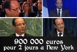 Mais l'escapade du président normal a coûté cher. Hollande a ainsi reçu à dîner 1500 Français de New York dans une salle de spectacle de Broadway, le Roseland Ballroom. Montant de la facture : 116 000 euros. Au total, d'après Le Parisien, ce voyage comprenant une délégation française de 61 personnes aura coûté... 900 000 euros ! Pour un simple discours à l'ONU ?